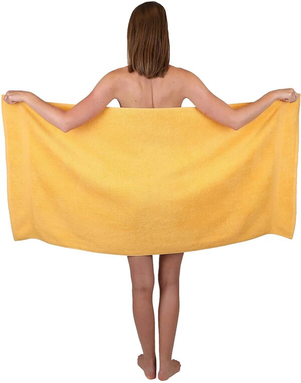 - Livraison: 6 serviettes de bain en tissu éponge de taille 70×140 cm couleur jaune miel