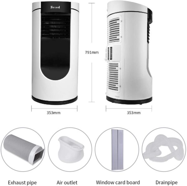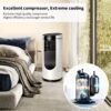 - Commande intelligente: le climatiseur mobile dispose d’un panneau à écran tactile intelligent à LED, d’une télécommande, d’un réglage de température de 17 à 30 degrés et d’une fonction de temporisation intelligente, vous permettant de profiter facilement de la fraîcheur.