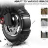 - 🏅 SÉCURITÉ ET STABLE – Que vous soyez un pilote expérimenté ou un tout nouveau débutant, avec l’e scooter adulte E202, vous n’avez pas à vous soucier de la sécurité. Il dispose à la fois d’un frein à disque conventionnel et d’un système de freinage électronique double (EBS), qui offre une distance de freinage plus courte et une stabilité et une maniabilité plus stables de l’expérience de freinage, ce qui se traduit par la meilleure sécurité routière de sa catégorie.