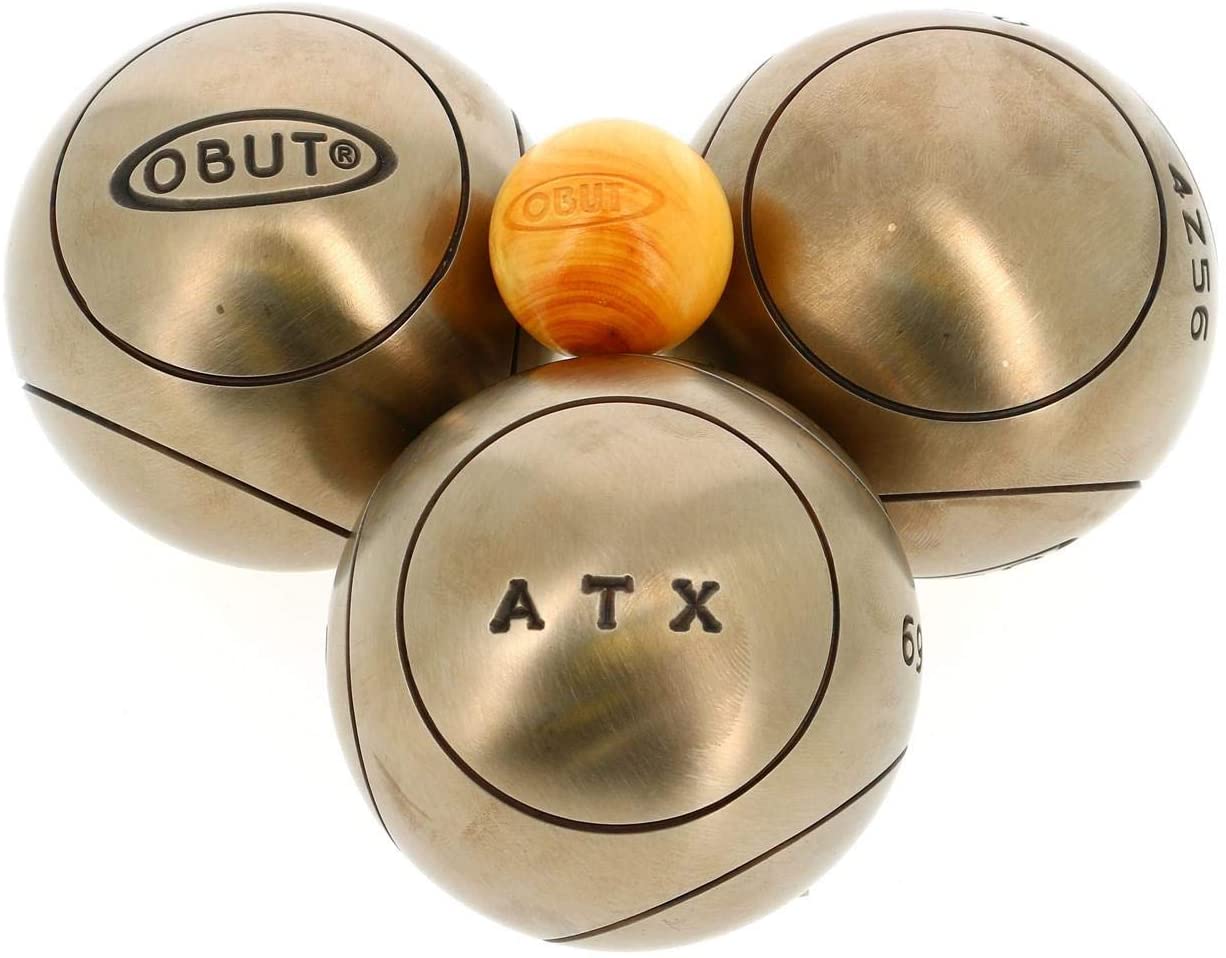 Descriptions générales: – -DIAMETRE: 72 mm LA TRIPLETTE LA PLUS PARFAITE DU MONDE. -KIT PRET A PETANQUER (Jeu de 3 boules, un but et une housse de rangement) -Elle équipe les joueurs les plus célèbres en France ou à l’étranger… Précision du diamètre + -20 centièmes de mm… Précision de l’équilibrage < = à 0.5% du poids de la boule… Précision de la dureté sur toute la circonférence de la boule… Faible marquage aux chocs.. L’équipement de base de tous les champions… La reine incontestée pour le jeu provençal.. Tous les désirs du joueur possibles , car fabriquée jeu par jeu sur mesure. – -QUALITE DE L’ACIER: Inox spécial -( Inoxidable ). -DURETE: 1/2 Tendre 130 kg / mm2 pour un faible rebond. -EQUILIBRAGE Exceptionnel: 5 Etoiles. -FINITION: Satinée dorée. -ATTENTION: Les trois étoiles gravées sur les boules en 2013 et avant ne sont plus présentes sur les boules livrées depuis 2014. -Personnalisation par gravure impossible sur ce modèle. -Homologuées compétition.