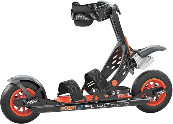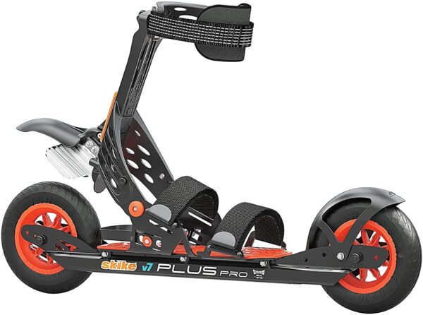 Cet équipement offre à la fois aux skaters nordiques débutants et confirmés un outil solide pour les sorties sur route et les sentiers fermes. Grâce à la fixation en continu avec fermeture velcro, le skike v7 Plus Pro peut être mis avec presque toutes les chaussures. Nous vous recommandons des chaussures rigides avec une semelle plate pour une meilleure adhérence et une transmission de force optimale.