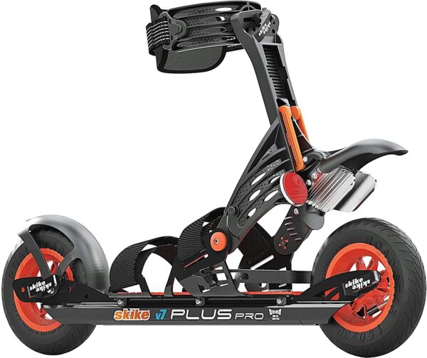 Le nouveau modèle de base de la collection Skike : le Skike v7 Plus Pro. Nouveautés : Par rapport au modèle précédent, il est un petit peu plus léger, de nouvelles jantes et un réflecteur ont été installés, le frein a été pourvu d’ailettes de refroidissement et toutes les vis de réglage ont été équipées de serrages rapides. En outre, les garde-boue sont maintenant inclus et pré-montés.