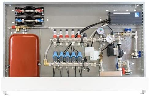 Strawa Comfort Station de mixage FBM-S10-18-V-W2-WMZ-C69-EGO 6 Hkr. Station de mixage pour chauffage de surface avec séparation système et vanne mélangeur 2 voies avec moteur 3 points pour le réglage de la température de pré-chauffage en fonction des conditions météorologiques, assure la compensation hydraulique entièrement automatique via le système EGO. Avantages du système EGO : – Le répartiteur de circuit de chauffage est toujours hydraulique – EGO fonctionne avec tous les régulateurs de température ambiante courants – pas de compensation hydraulique manuelle au distributeur – pas de réglage préalable ou de mise en service nécessaire – perte de pression la plus faible du répartiteur (les solutions thermostatiques à réglage dynamique standard nécessitent une pression minimale de 150 mbar) – Montage sans outil – Utilisation manuelle en voiture ouverte – Favorisable dans le cadre de la Optimisations techniques sur les systèmes de stockage (BAFA ou Voiture) – Système de raccordement vertical avec coin de compteur de chaleur et pont de compteur d’eau pour eau potable chaude et froide, système EGO intégré composé d’un répartiteur de raccordement FBH et pour chaque circuit de chauffage, un système de régulation électrique autonome intelligent, avec bornier monté 230 V, les moteurs de régulation sont La barre de serrage pré-câblée, montée dans un placard encastré, suffit pour environ Surface chauffée de 200 m², en fonction des besoins de chaleur, plus grande surface de montage de la station pour : – Positionnement confortable des composants – Câblage clair, fixe et propre de l’entraînement de régulation sur la barre de serrage – Possibilité d’encastrement de parois de compteur d’eau dans les espaces les plus petits et les plus faibles – Dimensions de l’armoire – Données de pose : max. Puissance thermique 25 kW pour Delta T 10 K – Max. Débit de 2,14 kbm/h – max. Température de fonctionnement primaire : 80 °C – max. Température de fonctionnement secondaire de 20 à 50 °C – max. Pression de service : 4 bars – Séparation du système : – Cercle primaire (circuit à haute température) et cercle secondaire (circuit à basse température du chauffage de surface sont les uns des autres,